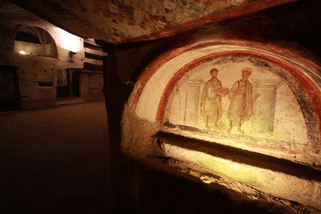 Al descender, se puede observar capillas y pinturas que datan del siglo VI d.C. Además, alberga una pintura de Adán y Eva del siglo III d.C y símbolos de diosas griegas.